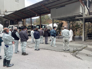 本日は仕事始めということで、本社駐車場スペースにて8:30より神事が執り行われました。
