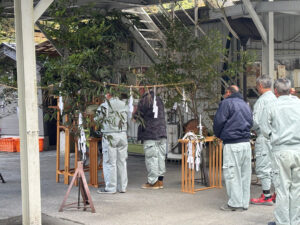 本日は仕事始めということで、本社駐車場スペースにて8:30より神事が執り行われました。